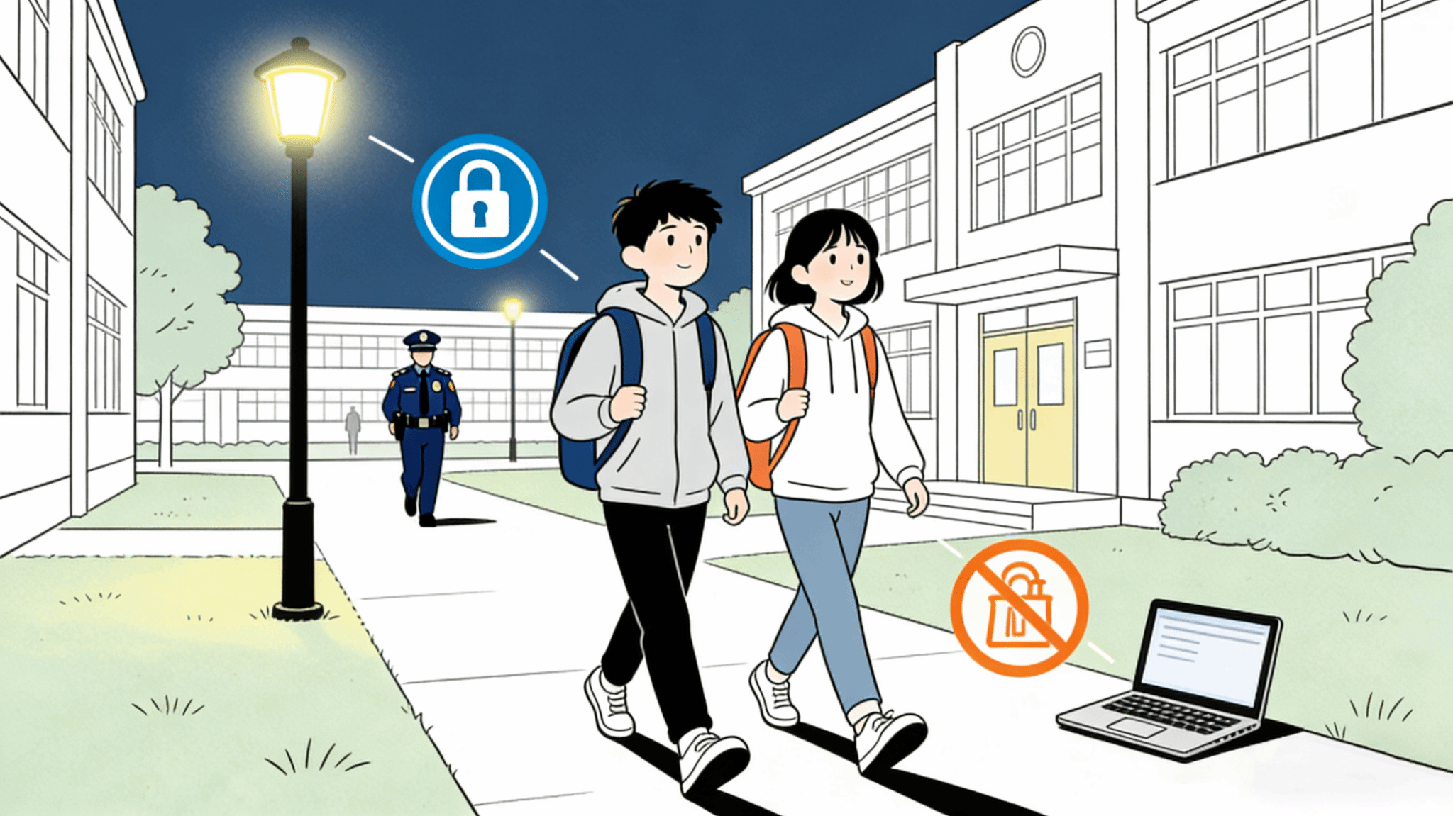 寒假期间校园人员流动减少,部分区域照明、监控设施可能因维护存在临时盲区,提示要求学生夜间尽量避免单独在校园偏僻、照明不足的区域长时间逗留或活动,确需出行时应结伴而行,并注意观察周边环境。个人贵重物品如笔记本电脑、手机、钱包、证件等要妥善保管,避免随意摆放,离开宿舍或教室时务必做到随手关门、反锁门窗。如发现陌生人员在校园内徘徊、游荡,或遇到设施损坏、异常声响、火情隐患等情况,要保持冷静,第一时间远离危险区域,并及时向保卫处报告,寻求工作人员协助。