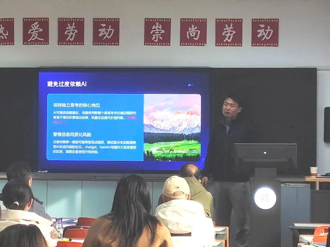 2025年11月26日下午14:30,中国西部边疆研究院“师者周论”第57讲在陕西师范大学雁塔校区4103教室内成功举办。孔祥辉副研究员以《AI如何赋能民族学研究——一个初学者的视角》为题与师生们展开交流,研究院徐百永教授主持本次讲座。